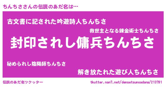 | ヒーロー風カッコイイあだ名 | 『スーパーチンチサ』『ネオチンチサ』 |