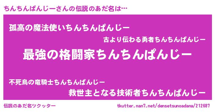 | ヒーロー風カッコイイあだ名 | 『ウルトラちんちんぱんじーマン』 |