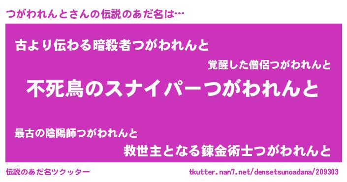 | 胡散臭い通販商品みたいなあだ名 | 『モテモテ間違いなし霊験あらたかなお札…その名も「つがわれんと」』 |