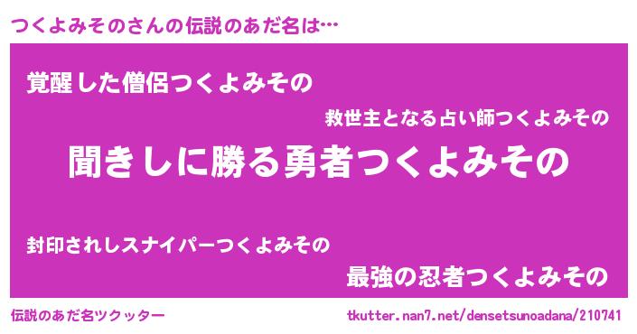 | ヒーロー風カッコイイあだ名 | 『ウルトラ戦士ツクヨミソノ』 |