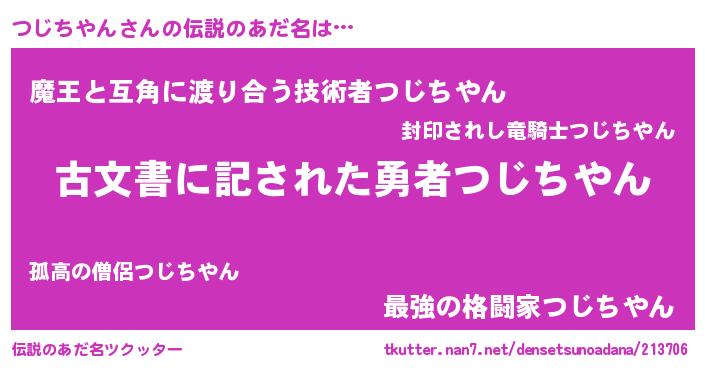 | ヒーロー風カッコイイあだ名 | 『ネオツジチヤン』『仮面ツジダー』 |