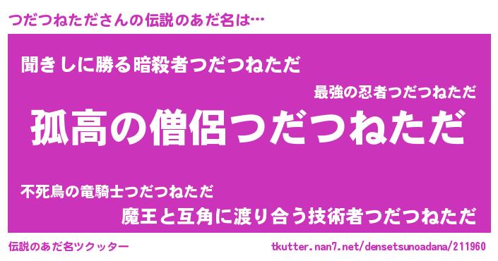 | 胡散臭い通販商品みたいなあだ名 | 『信頼と実績のネックレス…その名も「つだつねただ」』 |