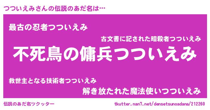 | ファンタジー風あだ名 | 『ツツフェル』『エターナルツツイエミー』 |