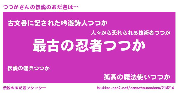 | ヒーロー風カッコイイあだ名 | 『ウルトラつつかマン』『ネオツツカ』 |