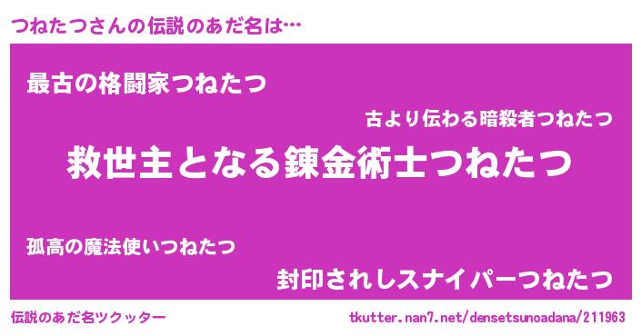 | 男性向けラノベタイトル風あだ名 | 『Re:つねたつから始める異世界生活』 |