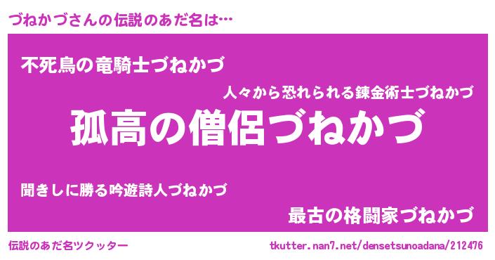 | ポケモン風あだ名 | 『ヅーネイ』『ヒヅネカヅ』 |