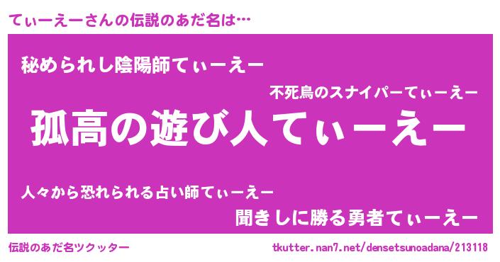 | 男性向けラノベタイトル風あだ名 | 『魔法科高校のてぃーえー』 |