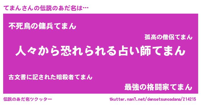 | 意味不明あだ名 | 『眠気覚ましガムてまん味』『自称てまん』 |