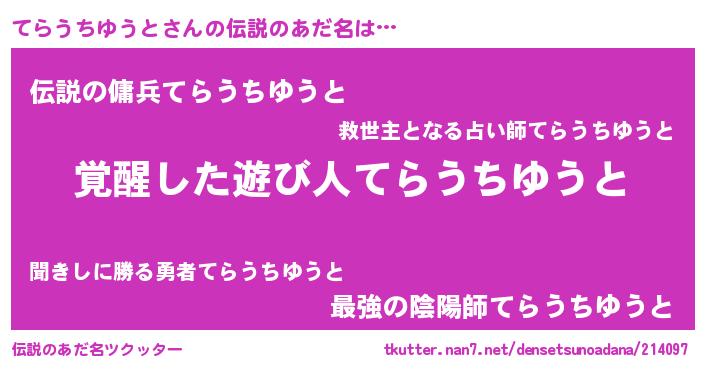 | 意味不明あだ名 | 『自称てらうちゆうと』 |