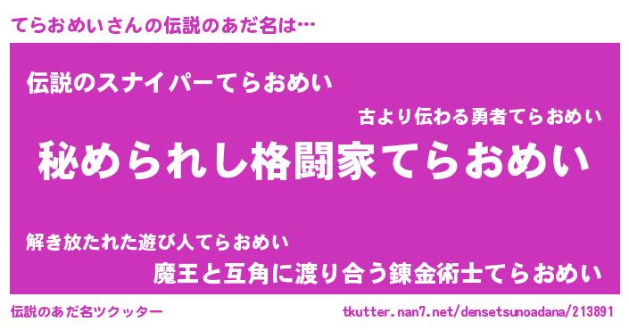 | 意味不明あだ名 | 『てらおめいフォーエバー』 |