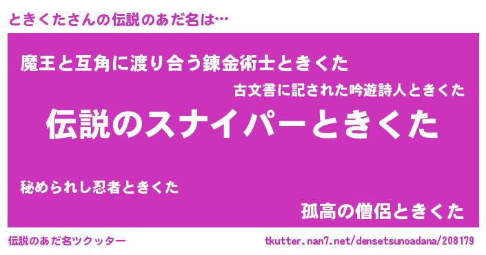 | 意味不明あだ名 | 『ペロリンときくた』『自称ときくた』 |