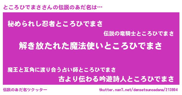 | ヒーロー風カッコイイあだ名 | 『銀牙騎士トコ』『ネオトコロヒデマサ』 |