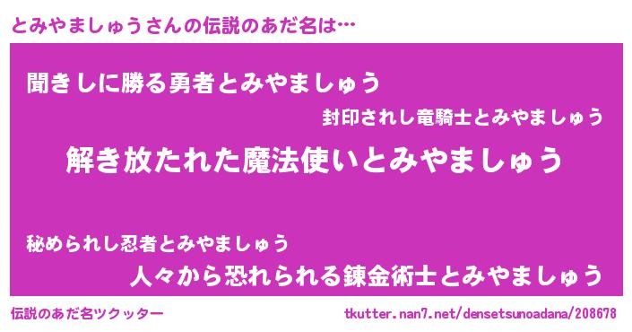 | 胡散臭い通販商品みたいなあだ名 | 『伝統あるサプリメント…その名も「とみやましゅう」』 |