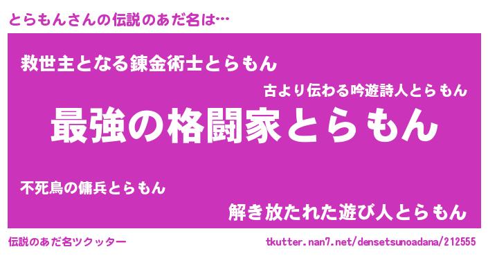 | ヒーロー風カッコイイあだ名 | 『ウルトラとらもんマン』『銀牙騎士トラ』 |