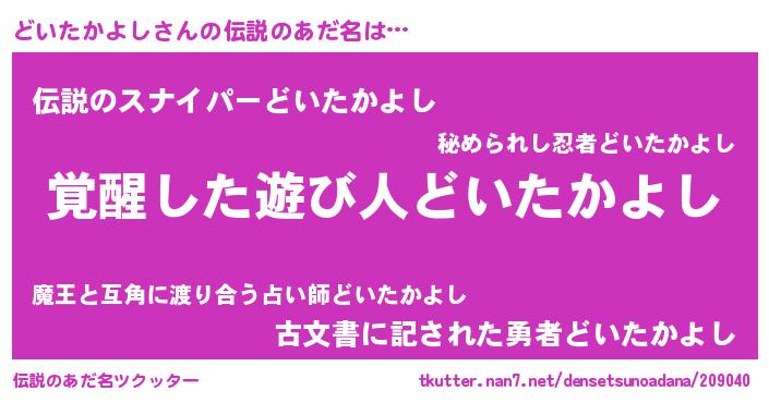 | 意味不明あだ名 | 『自称どいたかよし』 |
