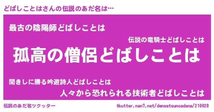 | 意味不明あだ名 | 『住所不定無職どばしことは(43歳)』 |