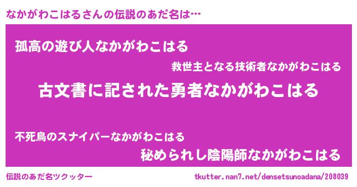 | 肩書あだ名 | 『なかがわこはる大将』 |