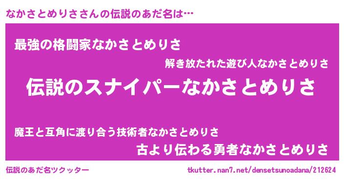 | ヒーロー風カッコイイあだ名 | 『スーパーナカサトメリサ』 |