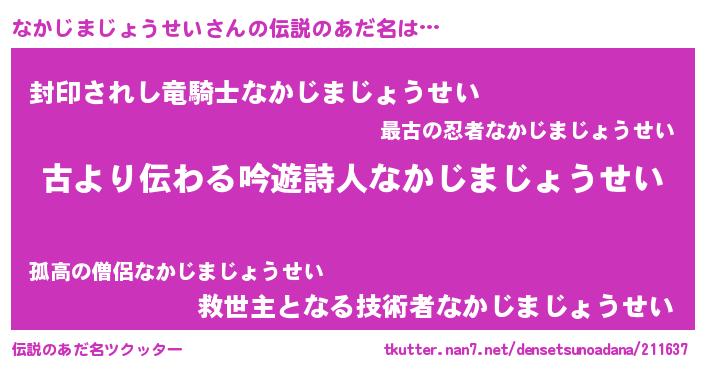 | 男性向けラノベタイトル風あだ名 | 『なかじまじょうせいという概念が存在しない退屈な世界 』 |