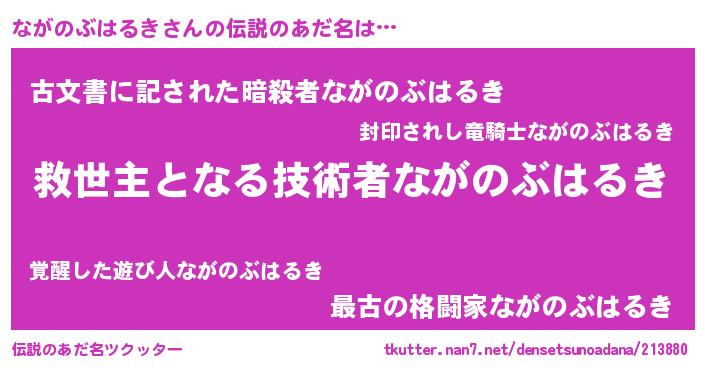 | ヒーロー風カッコイイあだ名 | 『慈愛の使者ながのぶはるき』 |