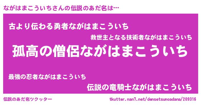 | 意味不明あだ名 | 『とにかく怪しいながはまこういち』 |