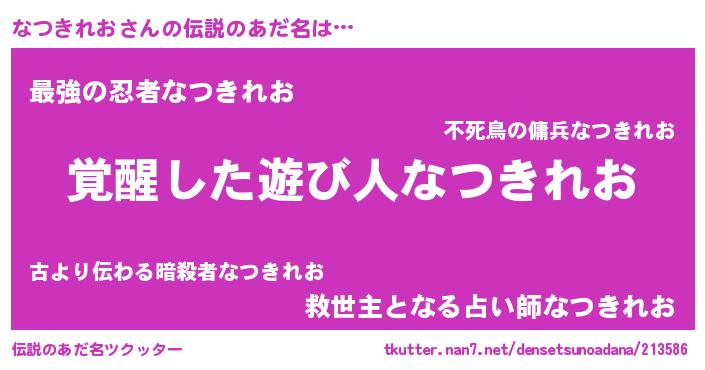 | 胡散臭い通販商品みたいなあだ名 | 『あなたにだけ特別に提供する世界で10本だけ現存している希少なブランデー…その名も「なつきれお」』 |