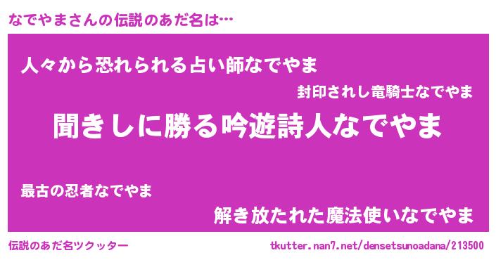 | 男性向けラノベタイトル風あだ名 | 『なでやまという概念が存在しない退屈な世界 』 |