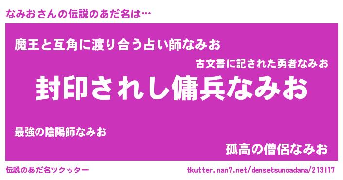| 胡散臭い通販商品みたいなあだ名 | 『億万長者になれる水晶球…その名も「なみお」』 |