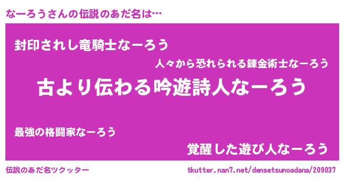| 意味不明あだ名 | 『永久保存なーろう』『自称なーろう』 |