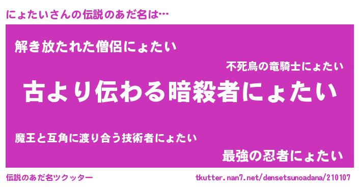 | 意味不明あだ名 | 『永久保存にょたい』『自称にょたい』 |