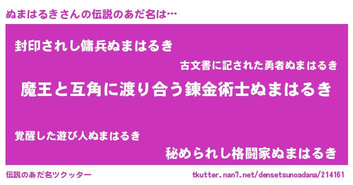| ヒーロー風カッコイイあだ名 | 『サイバー戦士ヌマハルキ』 |