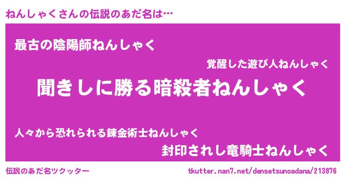 | 意味不明あだ名 | 『住所不定無職ねんしゃく(43歳)』 |