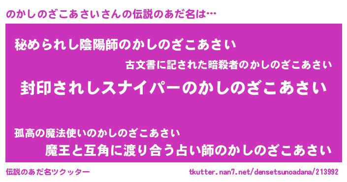 | 意味不明あだ名 | 『自称のかしのざこあさい』 |
