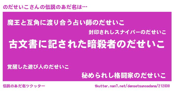 | ヒーロー風カッコイイあだ名 | 『ネオノダセイコ』『愛の使者のだせいこ』 |