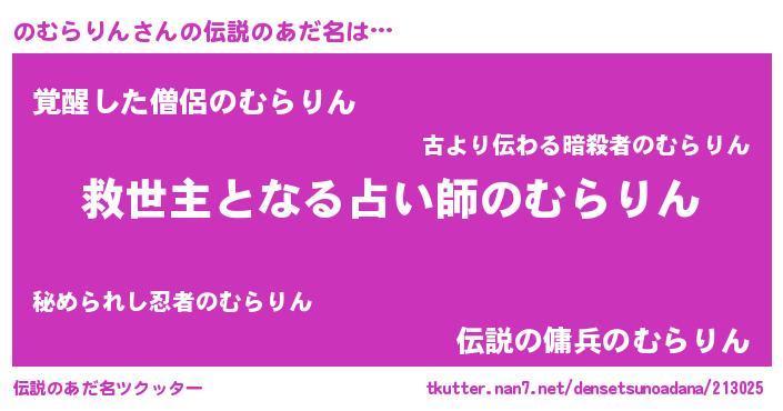 | 意味不明あだ名 | 『自称のむらりん』『ペロリンのむらりん』 |