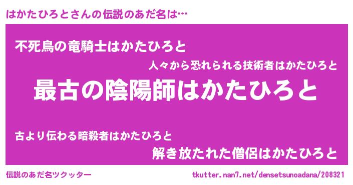 | 男性向けラノベタイトル風あだ名 | 『転生したらはかたひろとだった件』 |