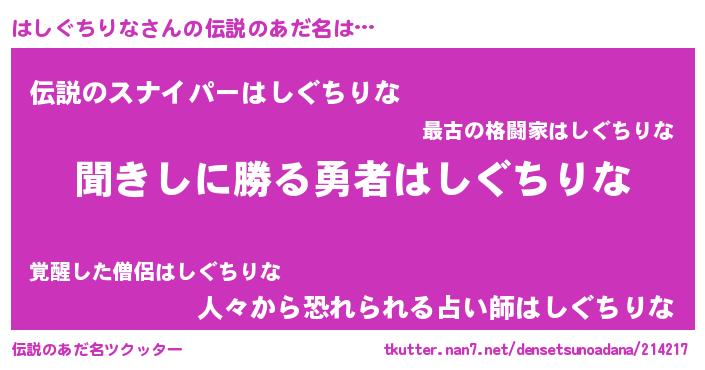 | 男性向けラノベタイトル風あだ名 | 『はたらくはしぐちりなさま!』 |