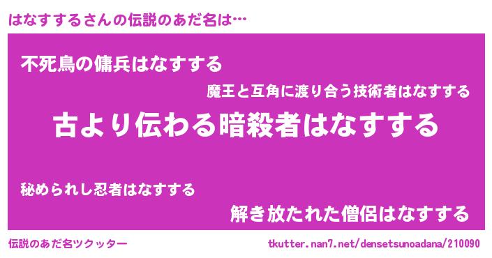 | 胡散臭い通販商品みたいなあだ名 | 『来世でも幸せになれる健康食品…その名も「はなすする」』 |