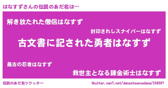 | ヘコむあだ名 | 『はなすず(震え声)』『はな太郎』 |