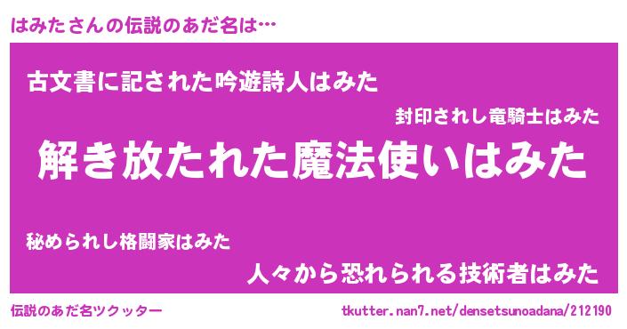| 意味不明あだ名 | 『住所不定無職はみた(1歳)』 |