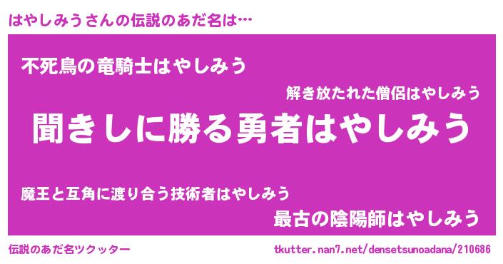 | 意味不明あだ名 | 『永久保存はやしみう』『自称はやしみう』 |