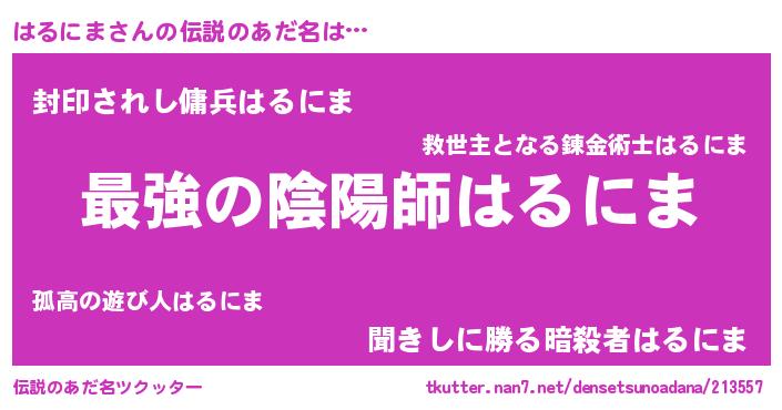 | 意味不明あだ名 | 『はるにまフォーエバー』『自称はるにま』 |