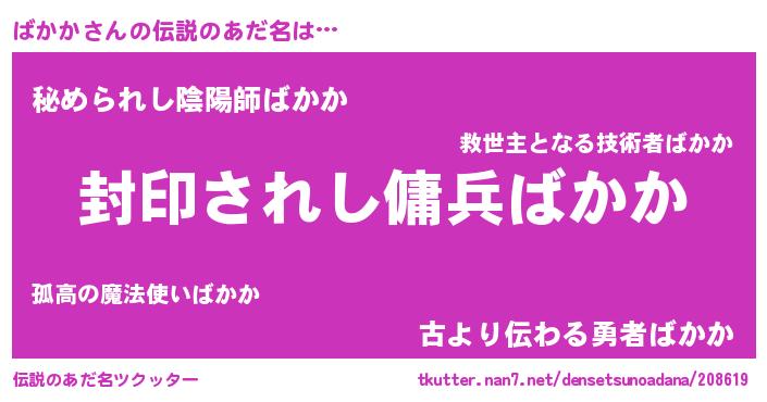 | ヒーロー風カッコイイあだ名 | 『最強戦士バカカ』『スーパーバカカ』 |