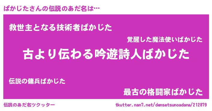 | 男性向けラノベタイトル風あだ名 | 『ばかじたという概念が存在しない退屈な世界 』 |