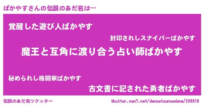 | 意味不明あだ名 | 『住所不定無職ばかやす(50歳)』 |