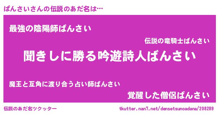 | 意味不明あだ名 | 『永久保存ばんさい』『自称ばんさい』 |