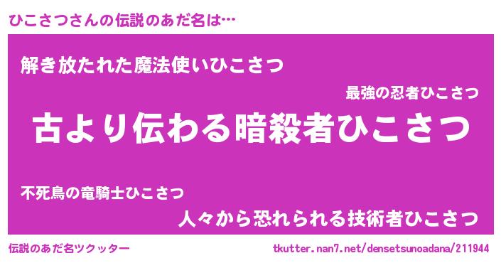 | ヒーロー風カッコイイあだ名 | 『ネオヒコサツ』『幻影騎士ヒコ』 |