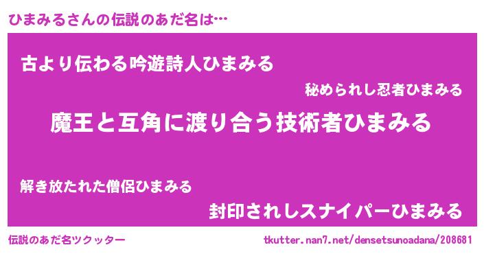 | ヘコむあだ名 | 『ひまみる(小並感)』『ひまにー』 |