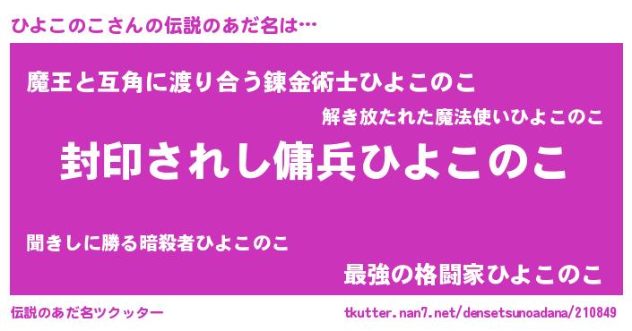 | 男性向けラノベタイトル風あだ名 | 『ヒヨコノコアートオンライン』 |