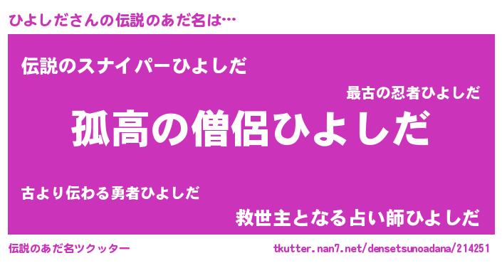| ヒーロー風カッコイイあだ名 | 『暗黒騎士ヒヨ』『仮面ヒヨダー』 |